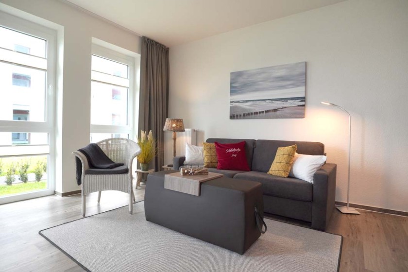 Nur 10 Meter vom Wasser entfernt erwartet Sie die stilvolle Erdgeschosswohnung "Pamir" im OstseeResort Olpenitz.
