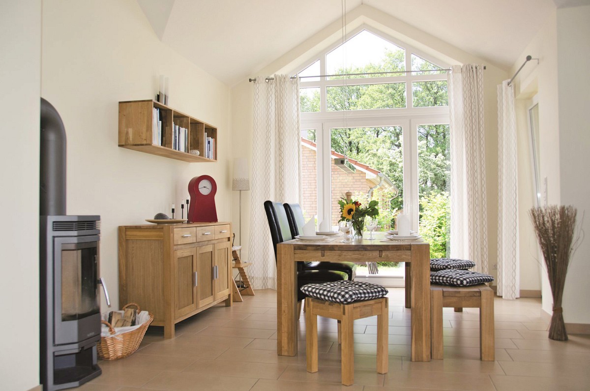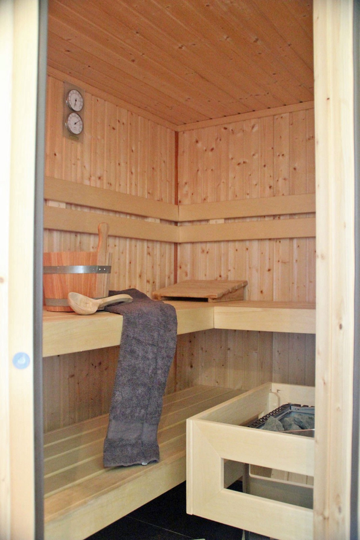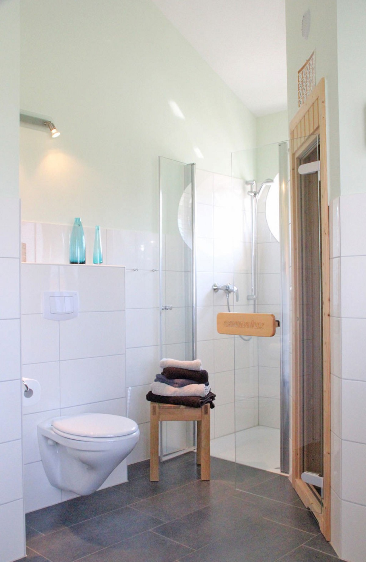 Das luxuriöse, große Ferienhaus nahe Kappeln verfügt über ein großes und helles Wohnzimmer und einem angrenzenden Essbereich sowie eine offene Wohnküche. Der Wohnbereich ist mit einer gemütlichen Leder-Sitzecke und einem Kaminofen für kuschelige Abende, ausgestattet. Das geräumige Badezimmer verfügt zusätzlich über eine für 3 Personen geeignete Sauna, sowie eine komfortable Eckbadewanne mit Whirlpoolfunktion zum Entspannen. Im gesamten Haus gibt es eine Fußbodenheizung, die auch manchem müden Fuß ein wohliges Urlaubsgefühl ermöglicht.