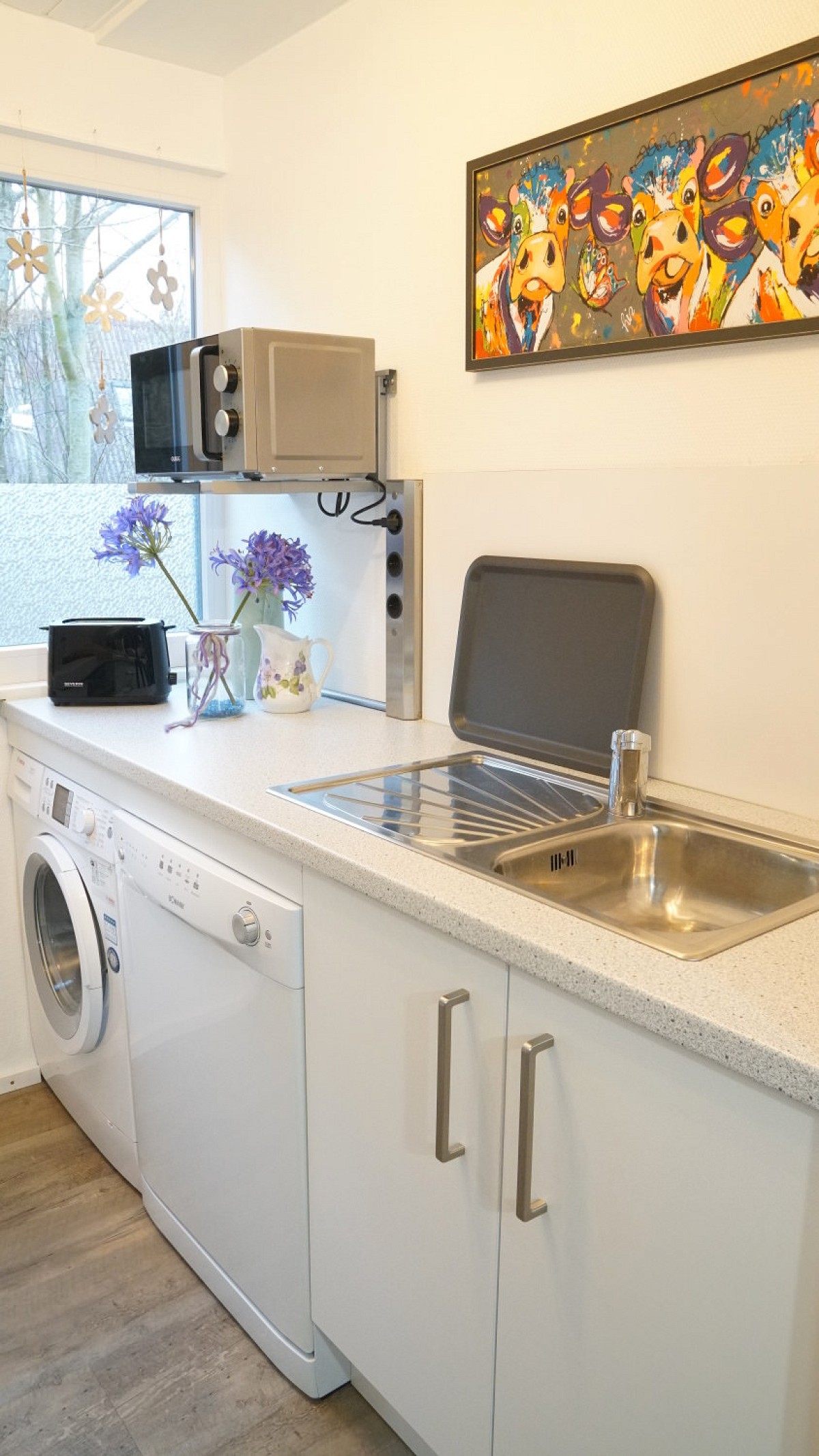 Wenn Sie die Region mit Ihren eigenen Fahrrädern erkunden möchten, können Sie diese im abschließbaren Schuppen sicher verwahren. Zur zusätzlichen Ausstattung gehören eine Waschmaschine und auf Anfrage können ein Babybett und Hochstuhl bereitgestellt werden. Ihr Auto parken Sie auf einem reservierten Parkplatz, ca. 90m entfernt.