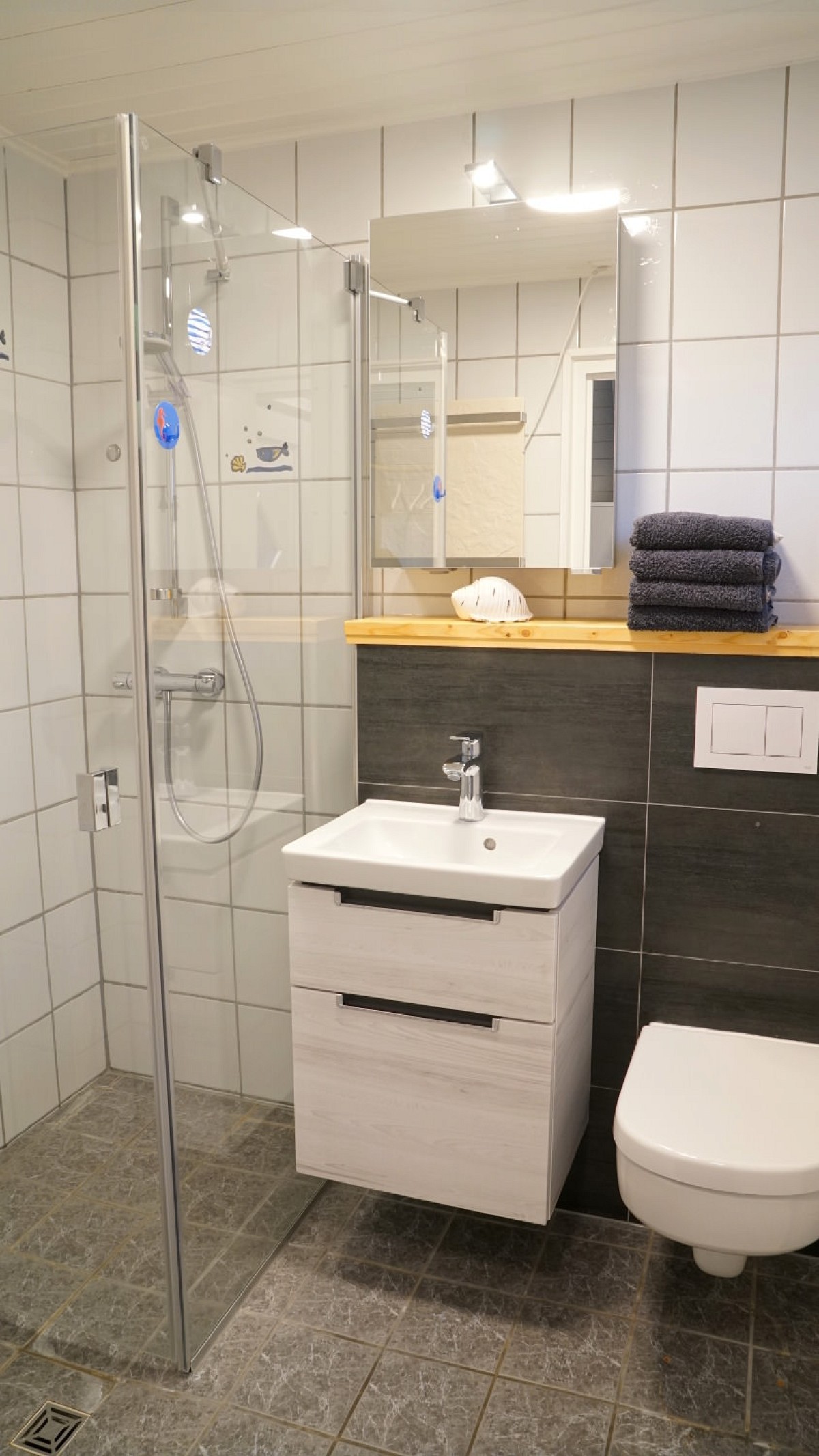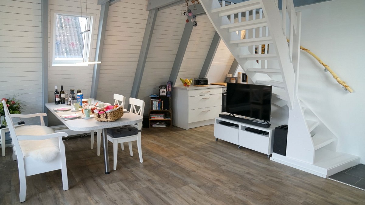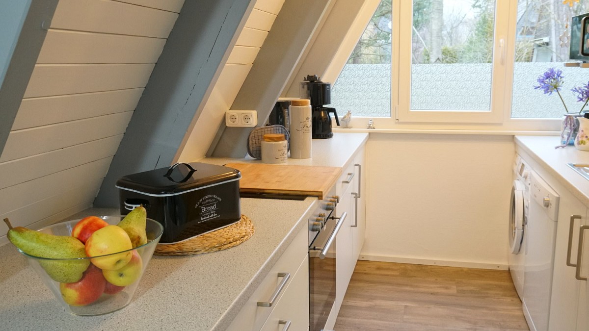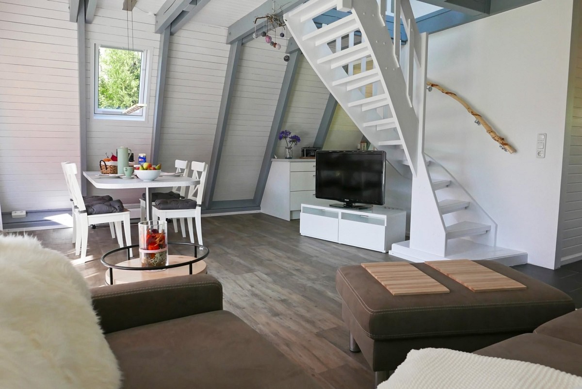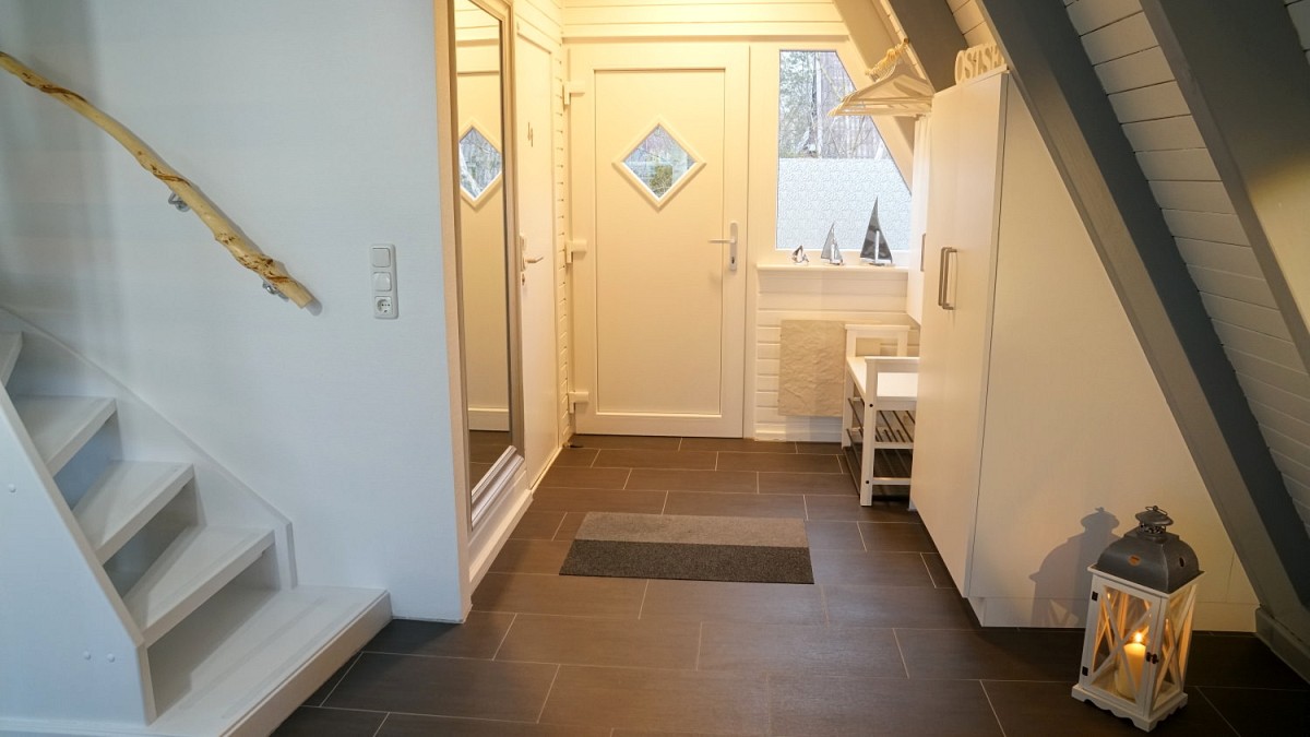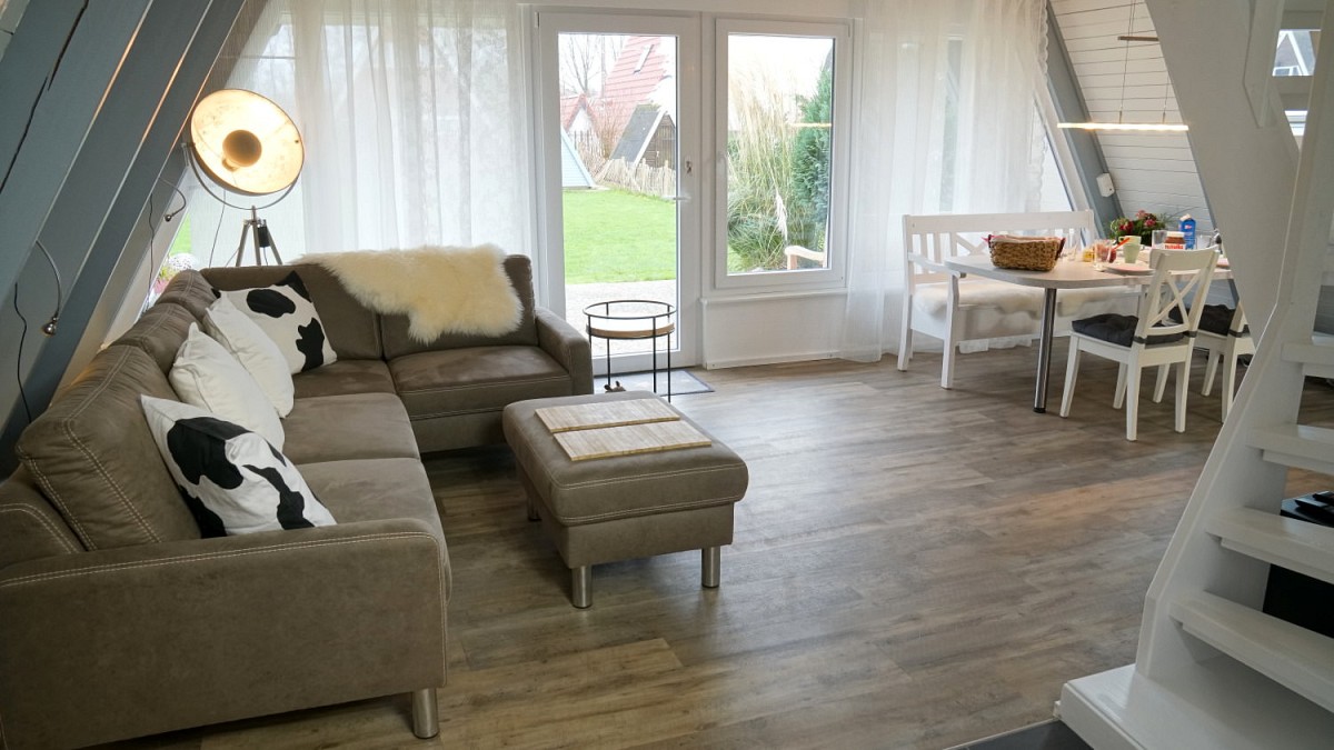 Im Erdgeschoss des Hauses befindet sich das große, helle Wohnzimmer mit kuscheliger Couchgarnitur, einem Essbereich und Zugang zur überdachten Terrasse. Mit Flachbild-Satelliten-TV, DVD Player und kostenfreiem WLAN ist für mediale Unterhaltung ebenfalls gesorgt. Angrenzend an den Wohnraum befindet sich die umfangreich ausgestattete Küche, in der leckere Mahlzeiten zubereitet werden können. Das Badezimmer ist mit einer ebenerdigen Dusche ausgestattet. Für die wohlverdiente Nachtruhe nach einem ereignisreichen Tag an der Ostsee stehen unseren Gästen zwei Schlafzimmer im Obergeschoss zur Verfügung: Eines mit einem großem Doppelbett und ein weiteres mit zwei Einzelbetten.