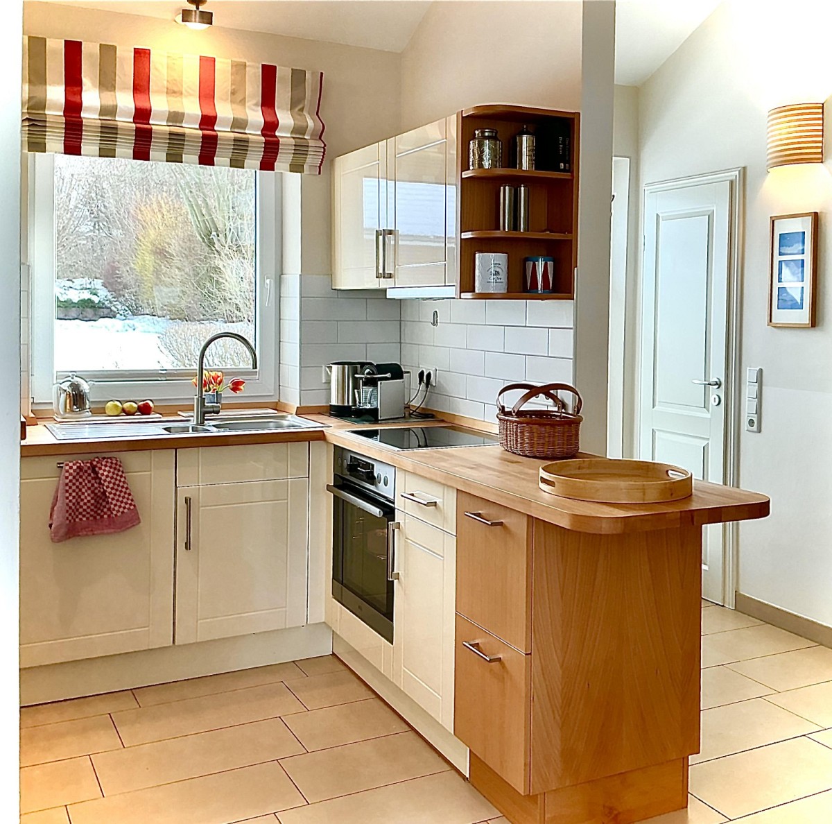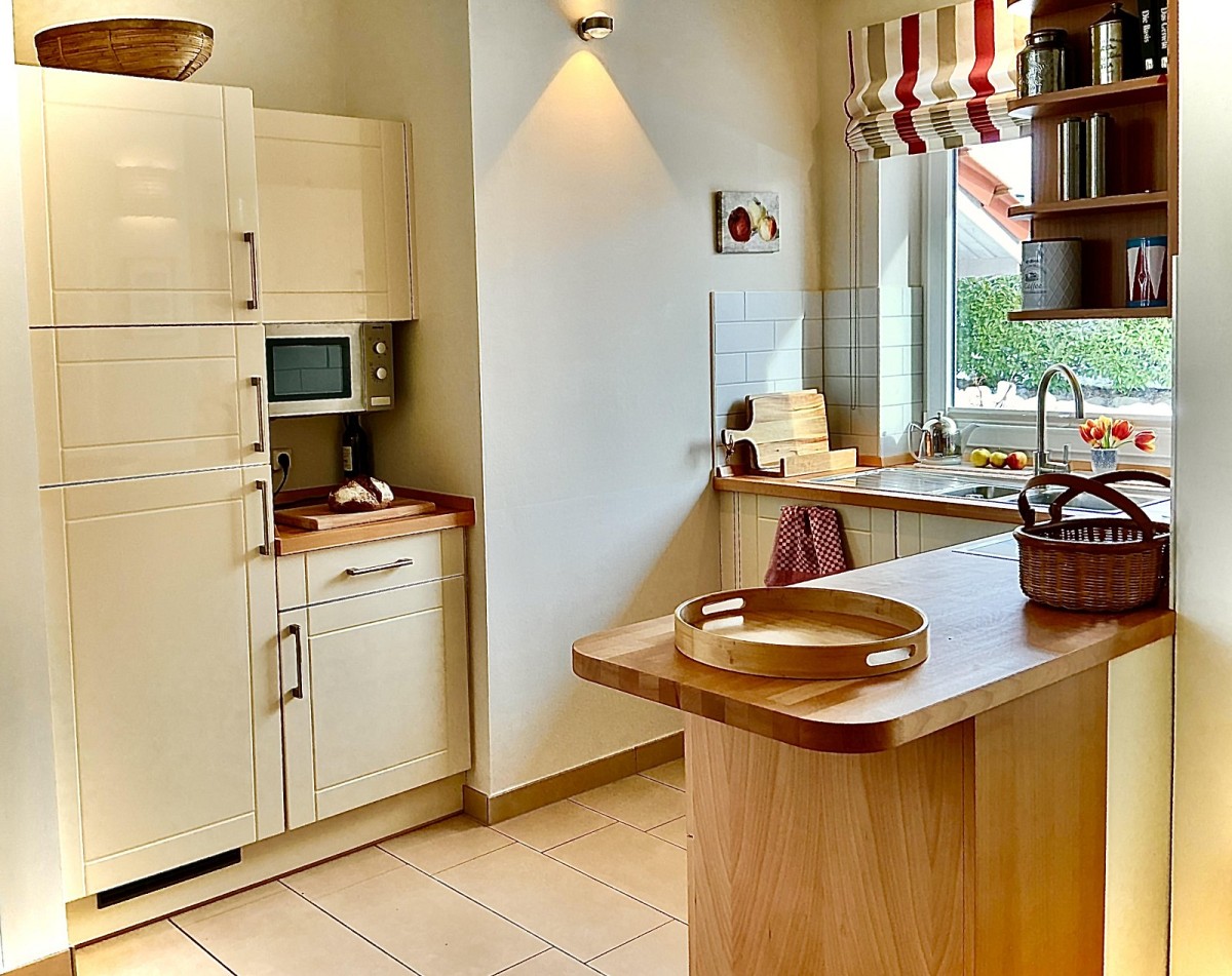 Das große Wohnzimmer mit hoher Decke bietet mit Bildern norddeutscher Künstler, persönlichen Designerstücken, einer kleinen Bibliothek, einem Bluetooth Soundsystem, einer Bose Stereoanlage und dem gemütlichen dänischen Sessel am skandinavischen Kaminofen Entspannung bei Sonnenschein und Regen. Am großen Esstisch kann man stundenlang die Spielesammlung durchprobieren, essen, sich unterhalten und aufs Wasser schauen. Glasfaser und W-Lan Zugang sind selbstverständlich. Die offene Küche ist so gut mit Geschirr und Küchenzubehör ausgestattet, dass auch kreative Hobbyköche kochen können. Alle Schlafzimmer bieten mit direktem Zugang zum Garten oder zur Terrasse Ruhe und Privatsphähre. Selbst ein Gang in die Sauna und ein Bad im Whirlpool sind im Haus möglich.