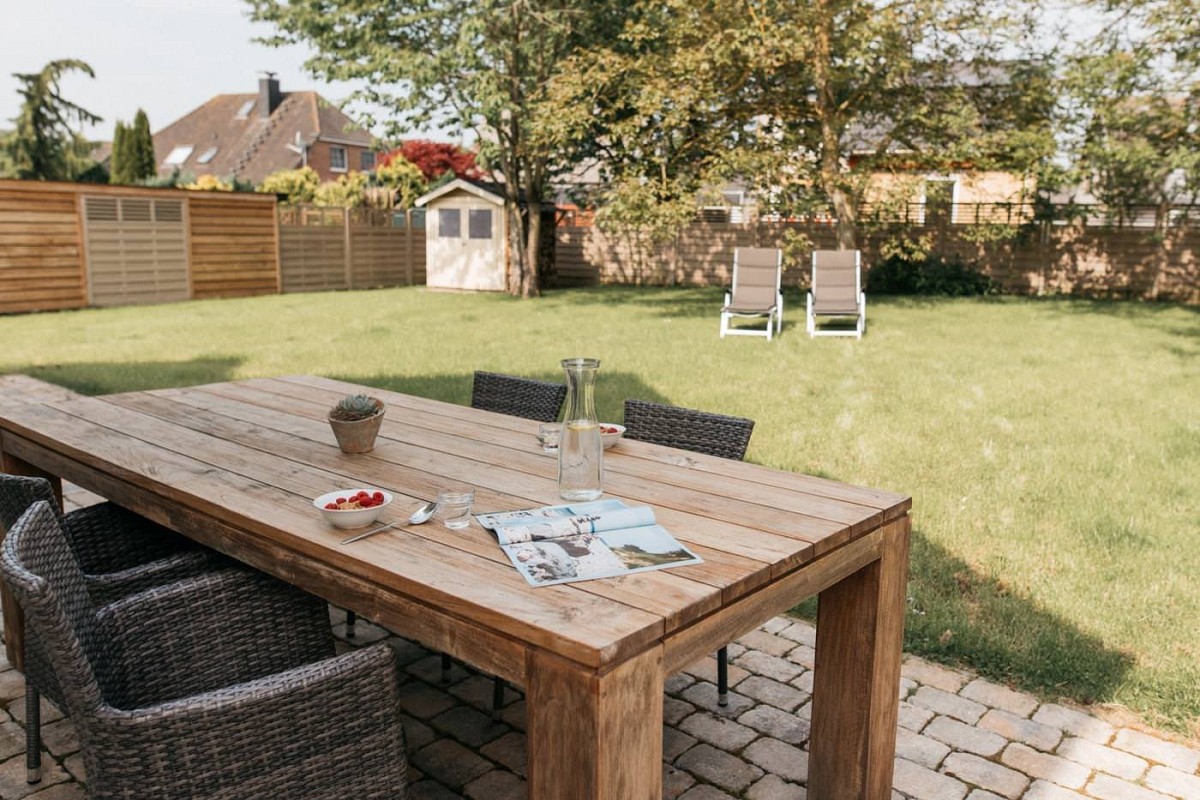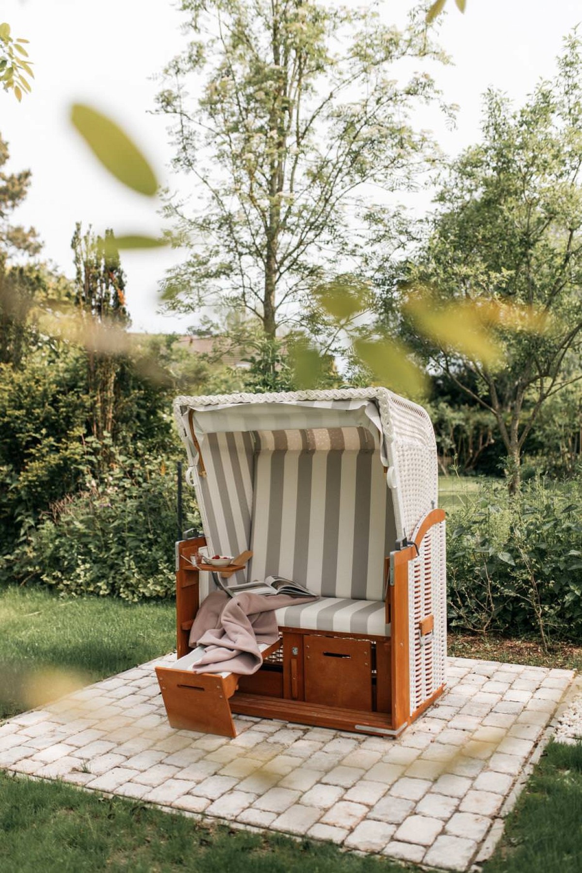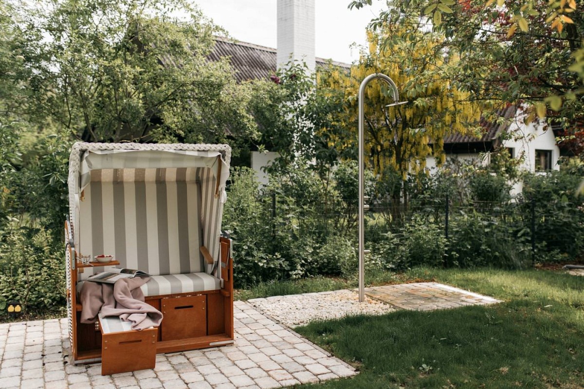 Im komplett umzäunten Garten können Sie die Sonnenstunden auf den Sonnenliegen, im Strandkorb oder den gemütlichen Loungemöbeln verbringen und dabei die Ruhe und den Blick ins Grüne genießen! Gegenüber vom Ferienhaus wartet sogar ein Spielplatz darauf, von Ihren Kindern erobert zu werden... während Sie auf der Veranda Kaffee trinken, können Sie Ihre Kinder beim Spielen und Toben beobachten. Besonderes Highlight im Garten des Ferienhauses ist die Freiluftdusche, die für die ersehnte Abkühlung an warmen Sommertagen sorgt.