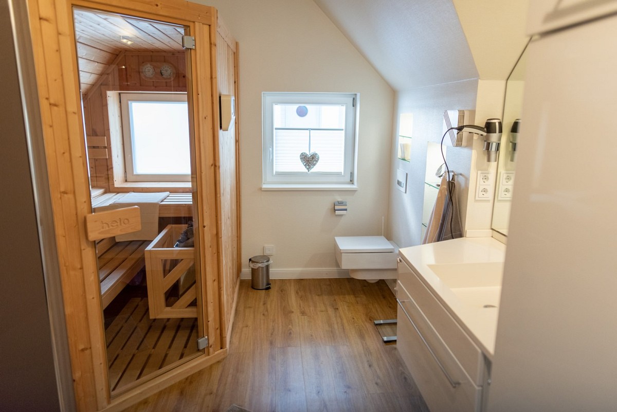 Sollte das Wetter wider Erwarten einmal nicht mitspielen, ist für vielfältige Unterhaltungsmöglichkeiten gesorgt, denn es stehen ein Flachbild-TV, Blu-Ray und DVD-Player und Teufel-Soundsystem zur Verfügung. Wellness & Entspannung pur können Sie im Bad mit großer Regendusche und großer, angrenzender Sauna genießen.