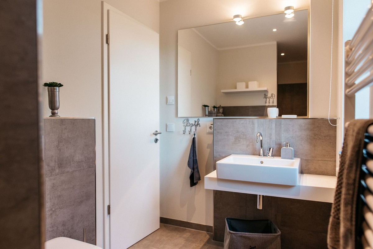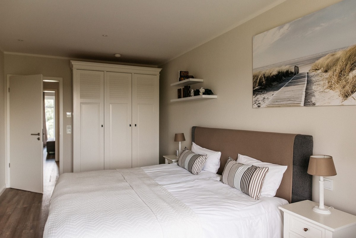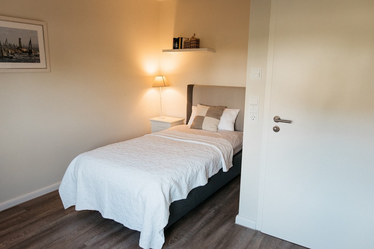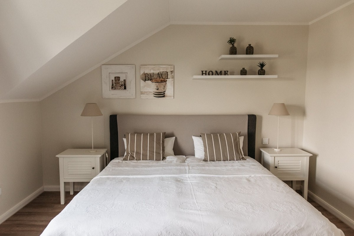 Für die wohlverdiente Nachtruhe nach einem erlebnisreichen Urlaubstag an der Ostsee stehen 3 Schlafzimmer zur Verfügung, die mit hochwertigen Boxspringbetten für einen erholsamen Schlaf sorgen. Auch in kälteren Jahreszeiten sorgen der Kaminofen und eine Fußbodenheizung für kuschelige Wärme, zusätzlich steht eine Sauna mit angrenzender Schwalldusche im großen Badezimmer des 1. Stockes für das Rundum-Wohlfühlprogramm zur Verfügung. Ein zweites Badezimmer ist ebenfalls mit ebenerdiger Dusche und Fön ausgestattet, sodass man auch mit maximaler Belegung viel Raum und Komfort genießen kann.
