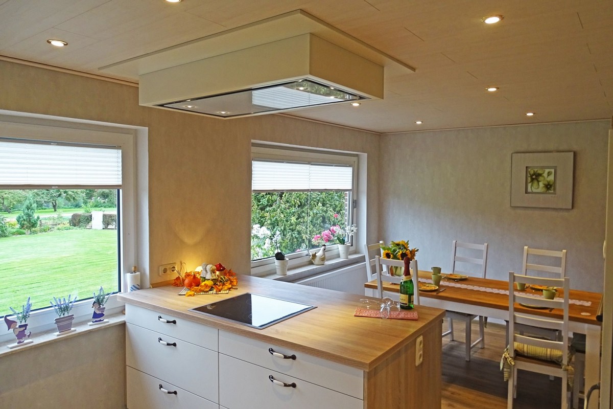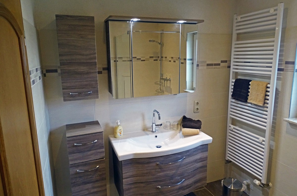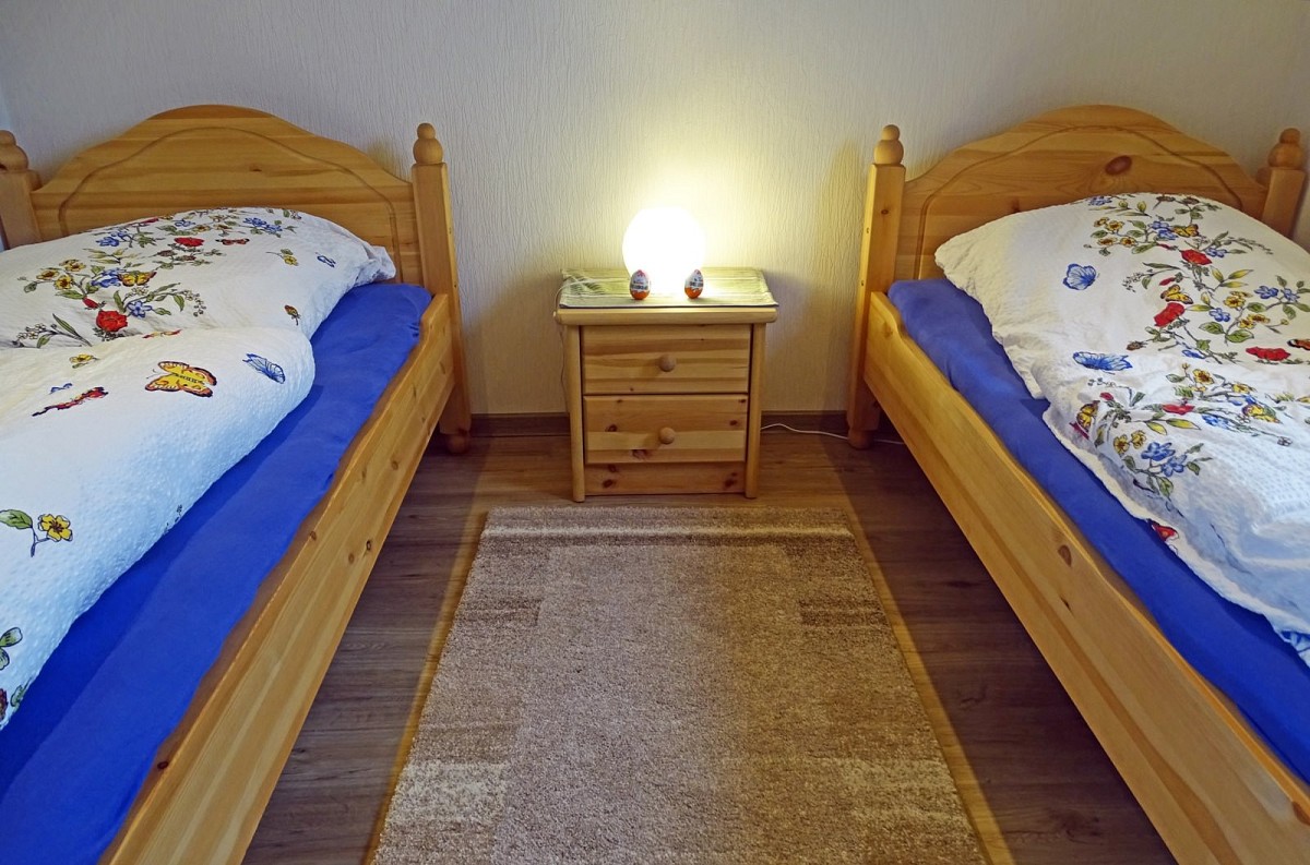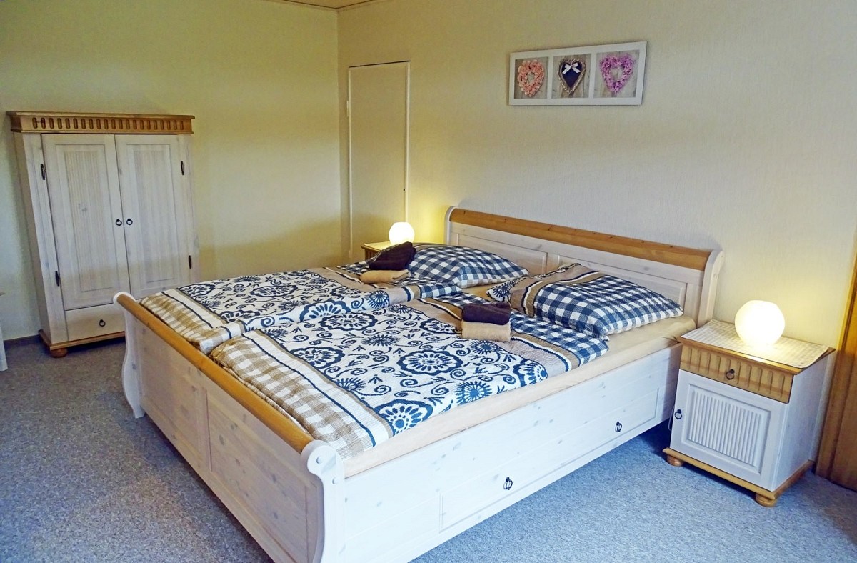 Die gemütlich eingerichtete Ferienwohnung bietet auf 88 m² viel Platz für 4 Personen. Die Räumlichkeiten teilen sich in ein Wohnzimmer mit Ledergarnituren, eine angrenzende offene Küche mit moderner Ausstattung auf und das Bad verfügt über Dusche, WC und Fön. Für die Nachtruhe stehen ein Elternschlafzimmer und ein Kinderzimmer mit 2 einzelnen Betten bereit. Das Kinderzimmer wird durch einen Vorhang vom Flur abgegrenzt.