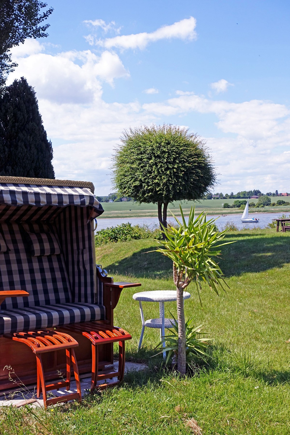 Die traumhafte Lage des Anwesens an der Schlei wird durch diverse Sitzecken im Garten, private Bootsanlegestelle und riesige Rasenfläche mit Sonnenliegen und Strandkorb gekrönt. Kostenlos stehen dem Reisenden, nach Absprache mit der Eigentümerin, Fahrräder und ein Ruderboot für die Dauer des Urlaubs zur Verfügung. Eine Kinderausstattung, bestehend aus Reisebett und Hochstuhl, kann vor Ort kostenlos geliehen werden.
