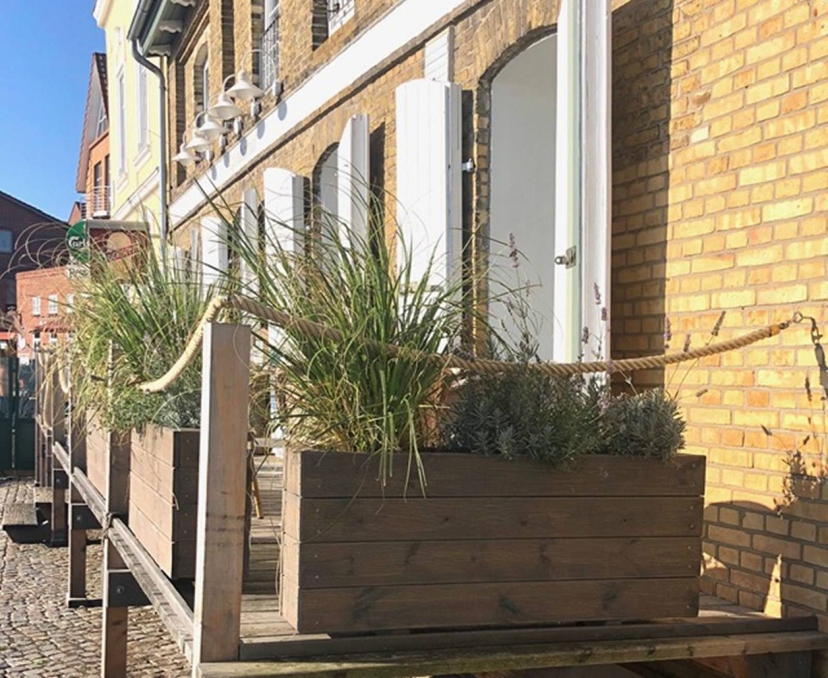 Eines der Highlights ist auch die mit den anderen beiden Wohnungen gemeinschaftlich nutzbare Terrasse, auf welcher man erhöht über der Hafenpromenade direkt vis-à-vis dem Segelhafen sitzt... Morgensonne beim Frühstücken oder abends einen Vino trinken - das benachbarte Restaurant liefert auf Nachfrage sogar ganz exklusiv auf Ihre Terrasse.