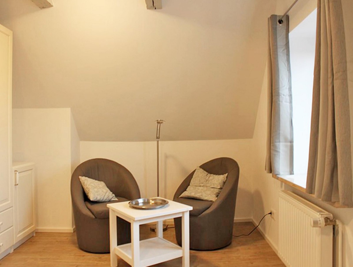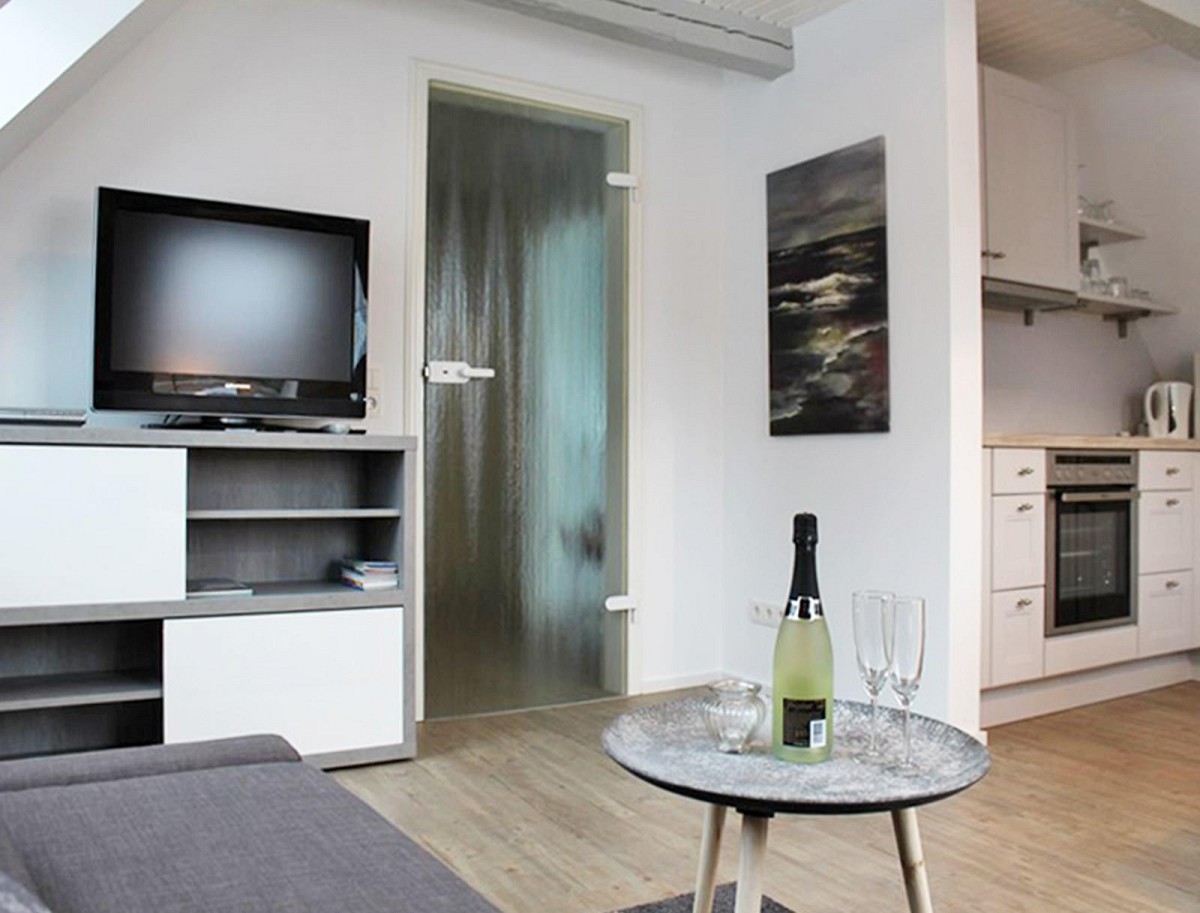 Diese moderne 4 Sterne Ferienwohnung teilt sich in einen gemütlichen Wohnraum mit offener Küche, ein Schlafzimmer mit Doppelbett sowie ein Badezimmer mit Runddusche auf und bietet einen tollen Rundumblick über Kappelns Sehenswürdigkeiten: die Schlei, Sankt-Nikolaikirche und die holländische Windmühle Amanda können aus den Fenstern erspäht werden.