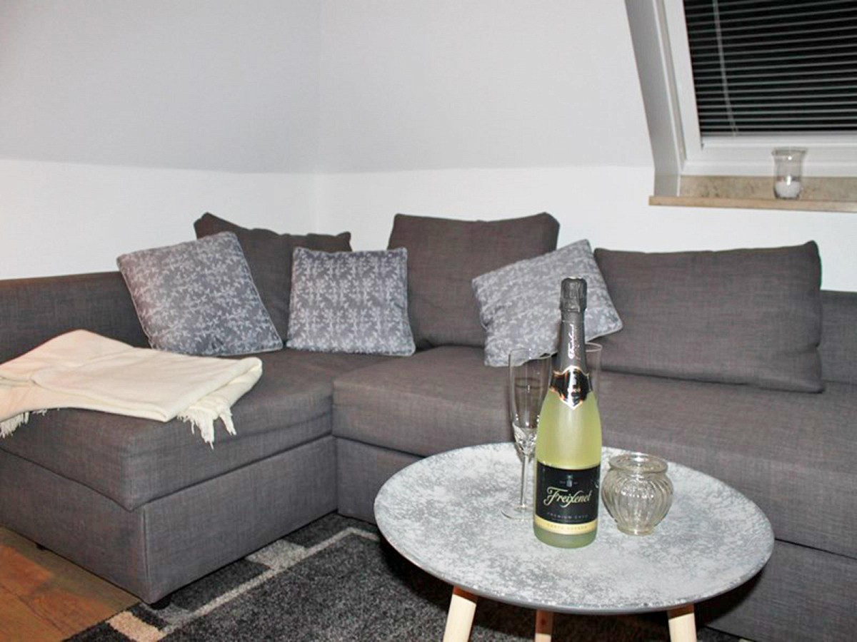 Die Wohnküche bietet diverse technische Annehmlichkeiten, wie einen Geschirrspüler, Backofen mit Ceranfeld, einen Kühlschrank mit Gefrierfach sowie einen angrenzenden Essbereich. Das Wohnzimmer ist mit einem gemütlichen Sofa ausgestattet und verfügt über einen Flachbild-Fernseher mit DVD-Player und Musikanlage.