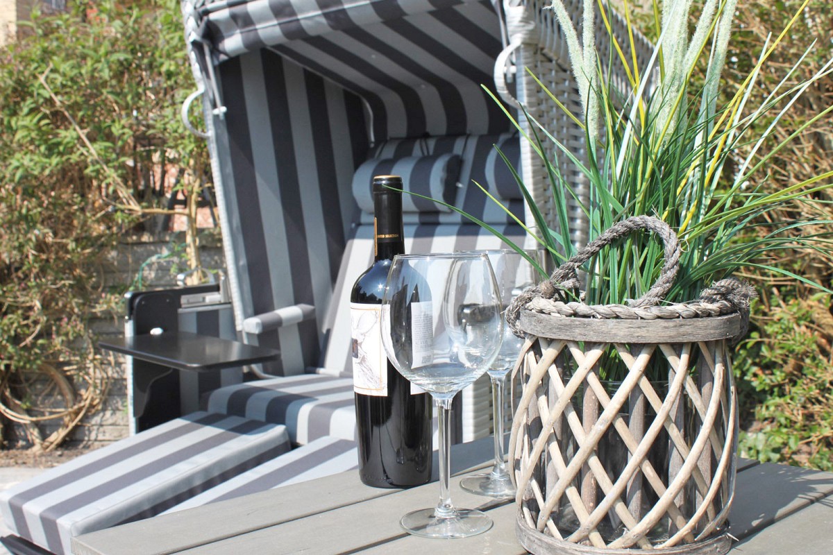 Im Garten des Hauses steht den Gästen ein eigener Strandkorb für gemeinsame Stunden in trauter Zweisamkeit zur Verfügung.