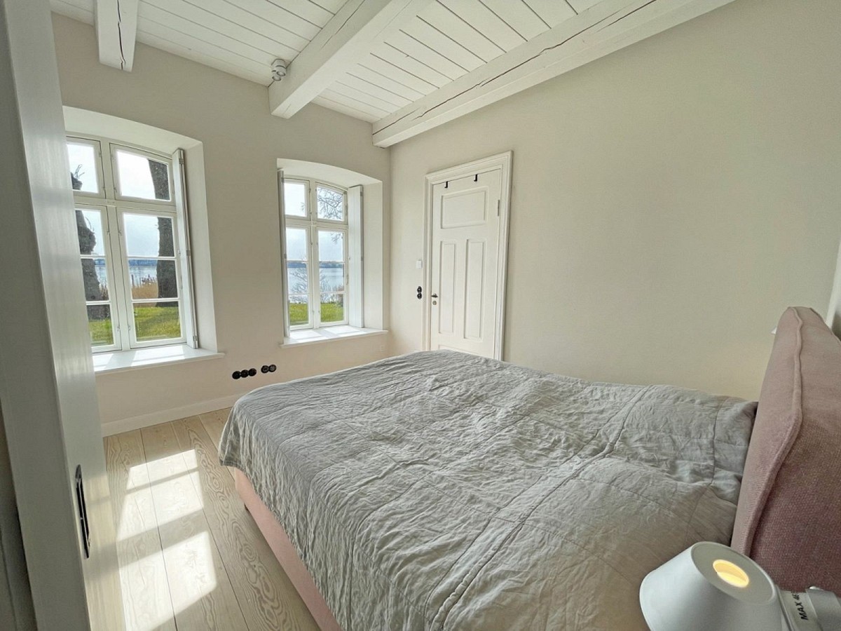 Direkt nebenan im offenen Schlafbereich steht Ihnen ein 180x200 cm großes Boxspringbett für die angenehme Nachtruhe zur Verfügung, auch von hier aus haben Sie einen tollen Blick direkt auf das Wasser. Das moderne Badezimmer ist mit einer Schiebetür vom Schlafbereich getrennt und wurde ebenfalls sehr modern eingerichtet und mit einer begehbaren Dusche mit Regenduschkopf ausgestattet.